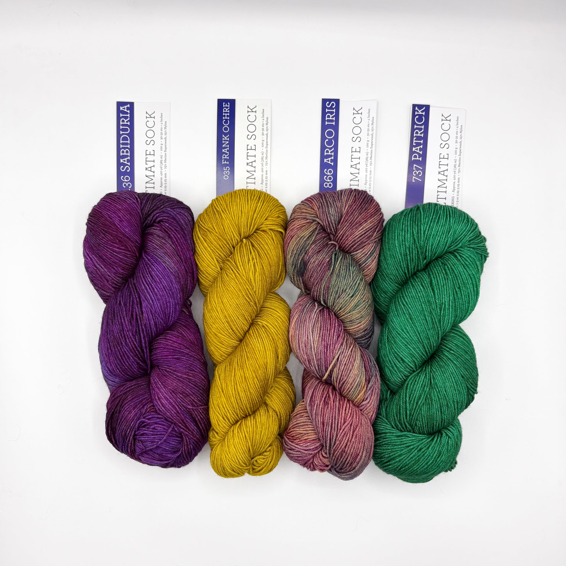 La lana elegida para este kit es Ultimate Sock de Malabrigo Yarn y contiene: