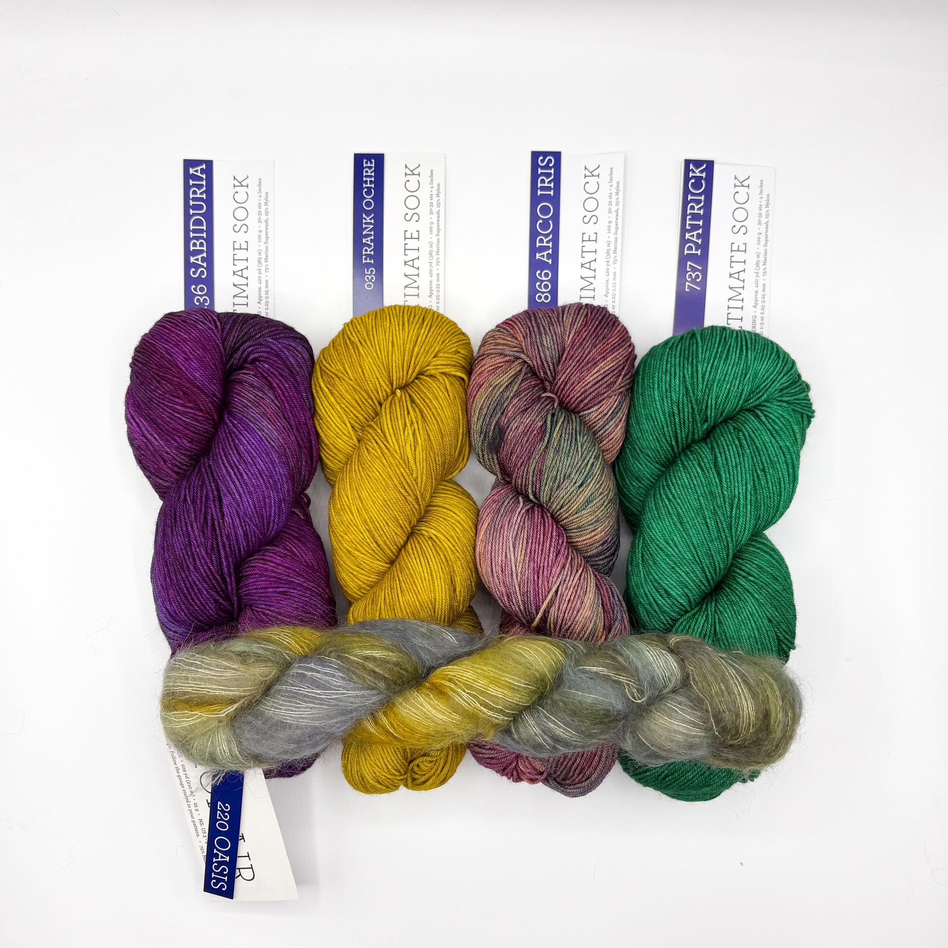 La lana elegida para este kit es Ultimate Sock de Malabrigo Yarn y contiene: