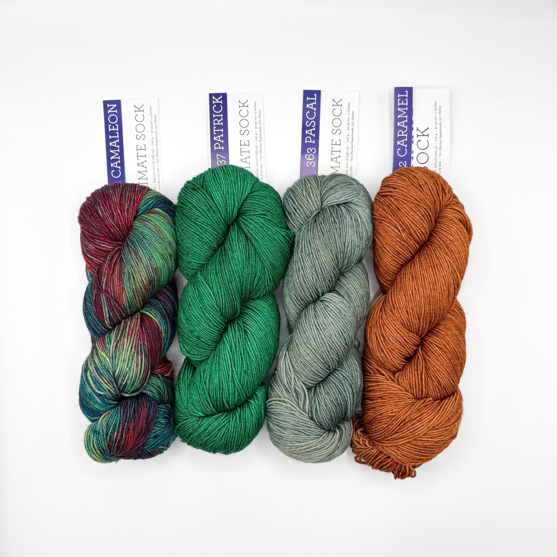 La lana elegida para este kit es Ultimate Sock de Malabrigo Yarn y contiene: